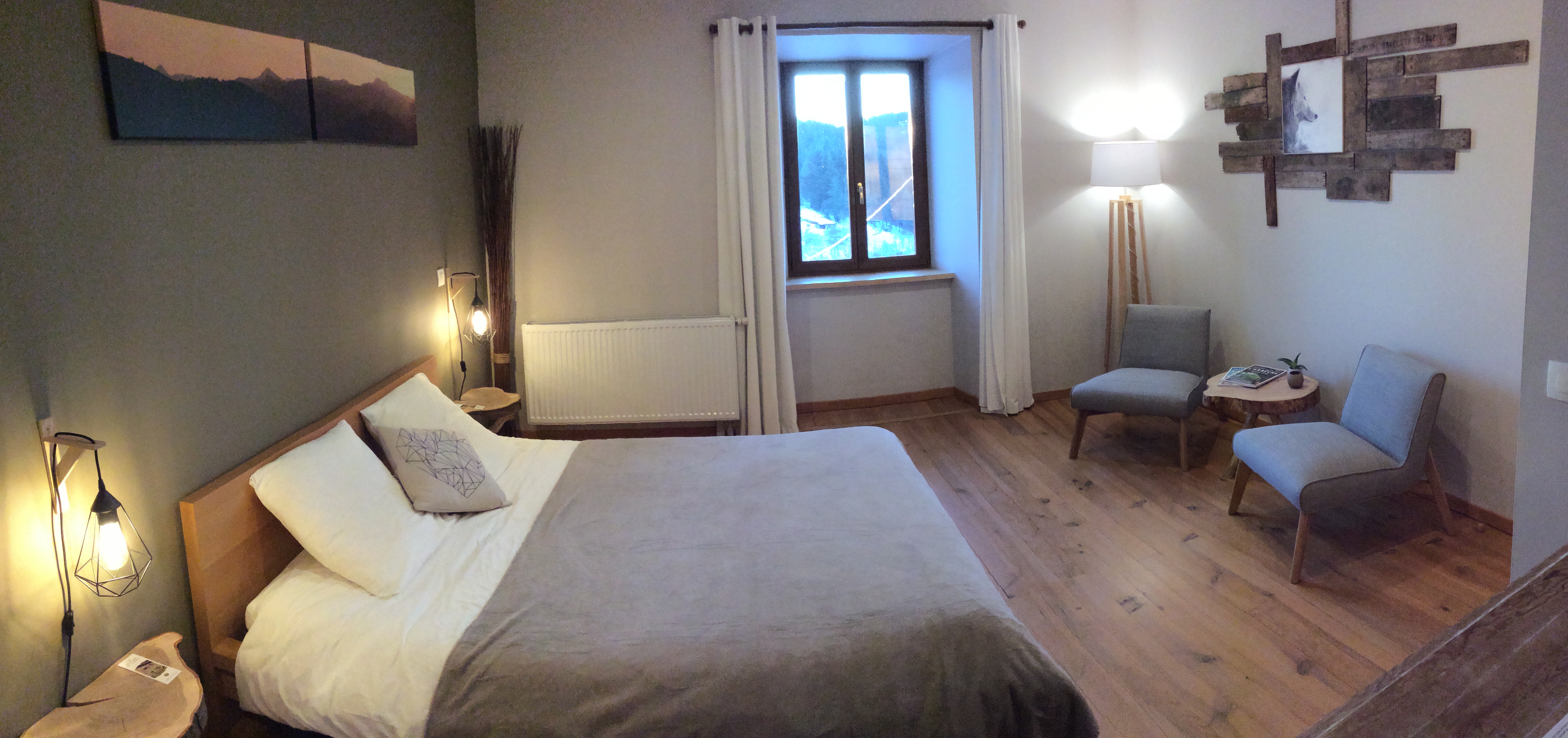 Cette chambre est composée d’un grand lit (1m60) et d’une salle de douche privative.